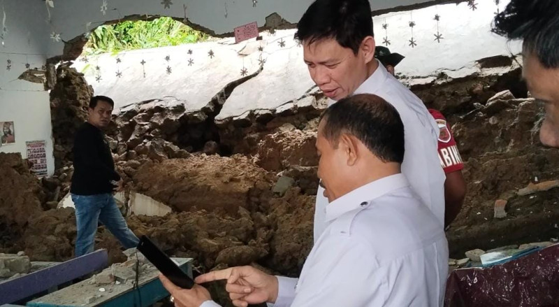 ” Bersyukur saat kejadiannya, semua murid sudah pulang semua, dan akibat amruknya proyek talud ini, dua ruangan kelas ikut hancur tertimpa bangunan proyek itu.” ungkapnya.