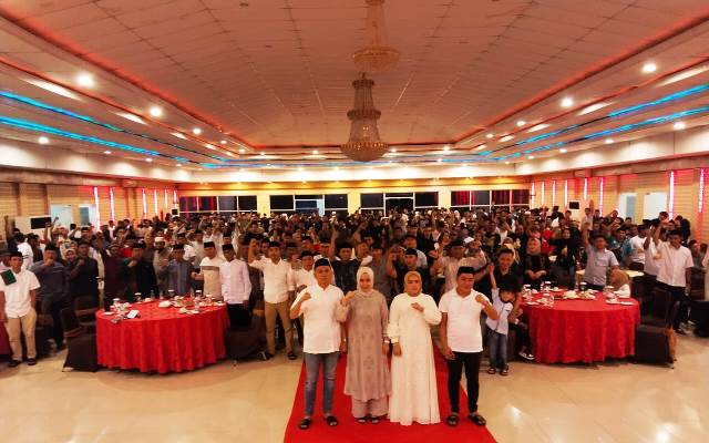 CHANELRAKYAT| Ribuan warga dari Kecamatan Kolaka dan Kecamatan Latambaga Kabupaten Kolaka, tumpah ruah menghadiri acara silaturahmi bersama Haji Amri dan Haji Husmaluddin, yang digelar disalah satu hotel di Kota Kolaka, Jumat (29/3/2024).